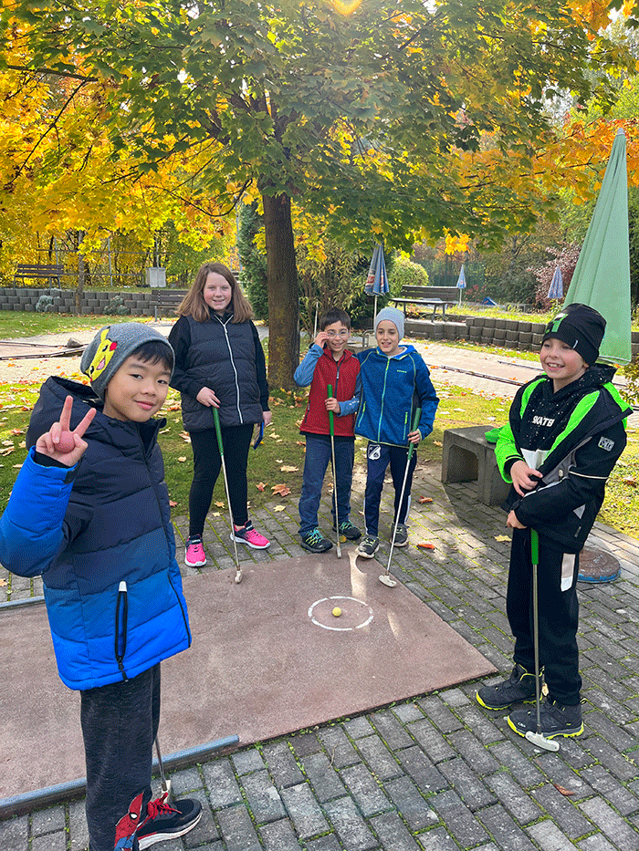 Am 10. Oktober machten sich die Klassen 4a und 4c auf den Weg zum Minigolfplatz in Neutraubling. Im Rahmen ihres Wandertags durften die Kinder dort ihr Geschick mit Schläger und Ball unter Beweis stellen.